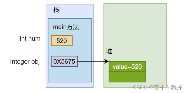 System.out.println(i == j);//falseInteger m = new Integer(1);//新new的在堆中