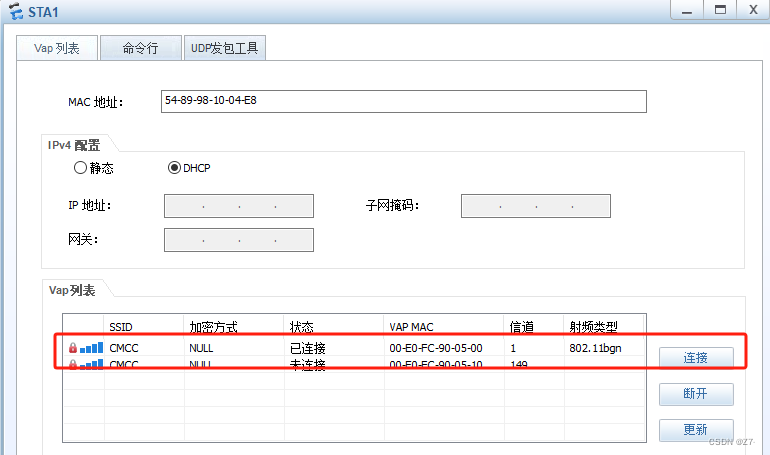 [AC6005-GigabitEthernet0/0/1]port default vlan 10 # 绑定vlan