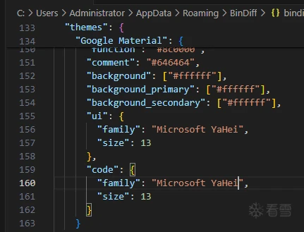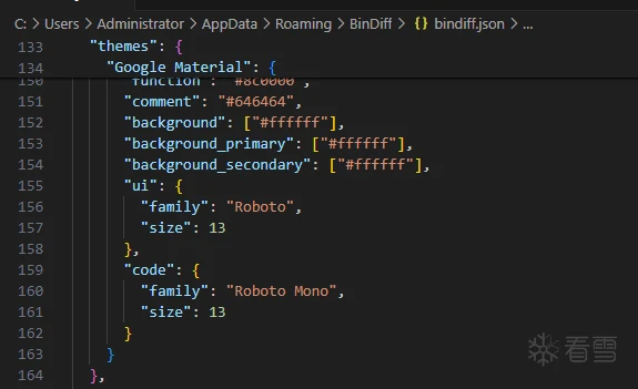 修改方法:修改%AppData%\BinDiff\ 路径下的bindiff.json文件