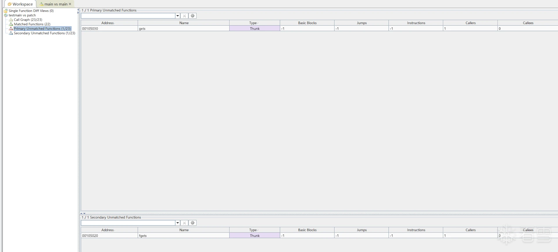 在 Matched Functions 视图中,可以看到:
