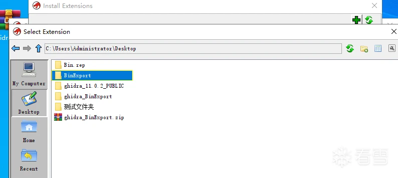安装插件,将下载的插件解包,打开Ghidra 依次打开 File --- Install Extensions