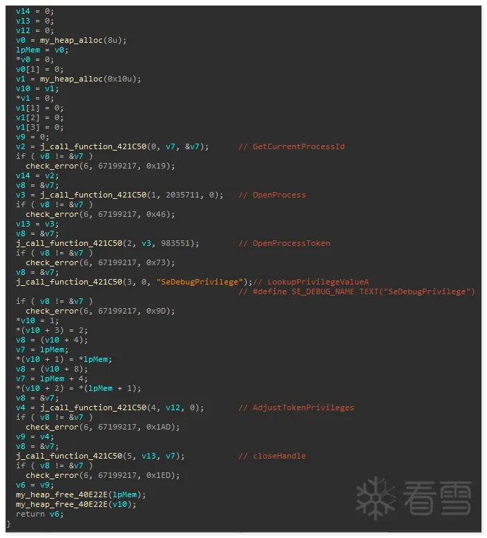 提权操作——获取 SE_DEBUG_NAME 权限,该权限允许跨进程操作,用于后续读取 steam 内存: