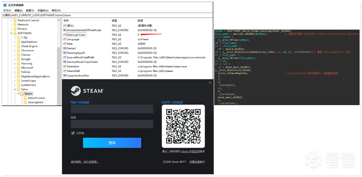 强制重新登录操作——设置 Steam 下 AutoLoginUser 字符为 0 ,这样会迫使用户重新登录,刷新 token 时效:
