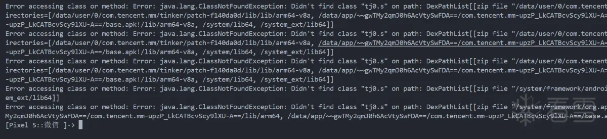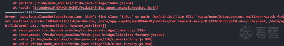 报错,提示没有找到tj0.s这个类,于是我想这个类可能不是被默认的类加载器所加载的,遍历一下所有的类加载器然后再hook