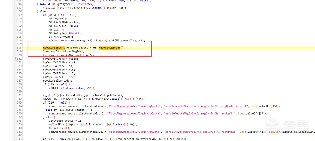 通过函数的调用堆栈,发现RevokeMsgEvent是被ij0.s.i方法调用的,我们直接将这个方法置空
