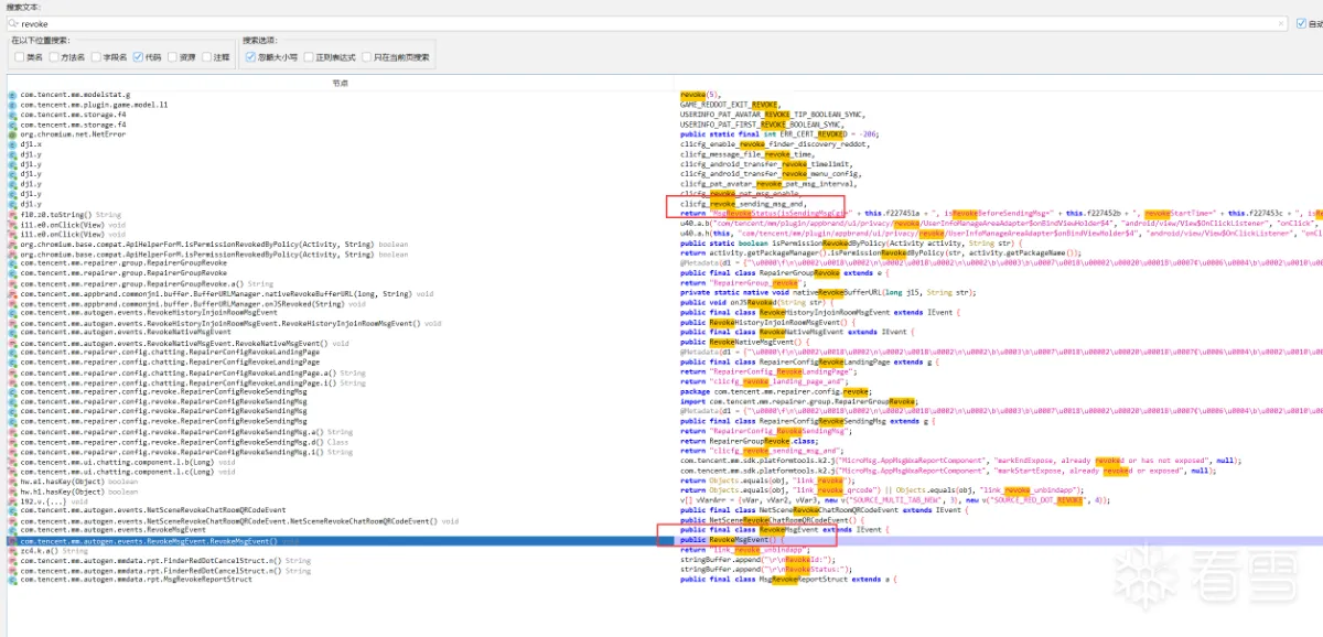 还是直接搜索字符串进行定位,考虑到PC端那里时revoke关键字,所以也是直接搜索revoke