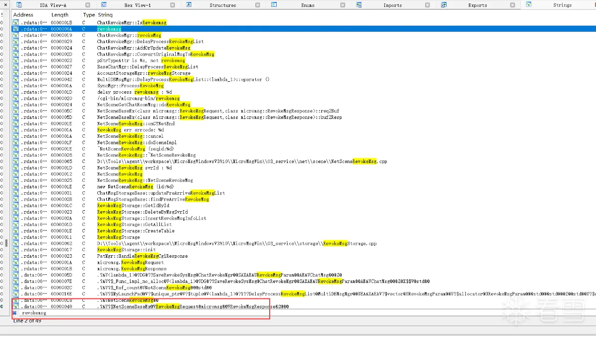 微信的核心功能都是在WeChatwin.dll(windows下)里实现的,信息撤回也不例外。