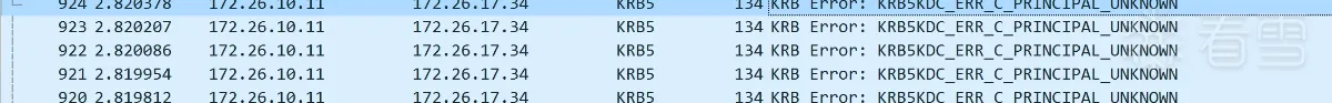 很简单了,直接去寻找有返回的就行,也就是在第一阶段发出AS_REQ有返回AS_REP就好,答案huangwei-liuyuhua-wangkai