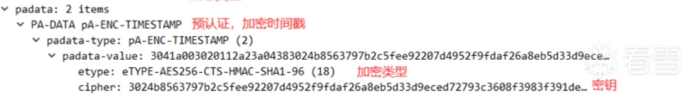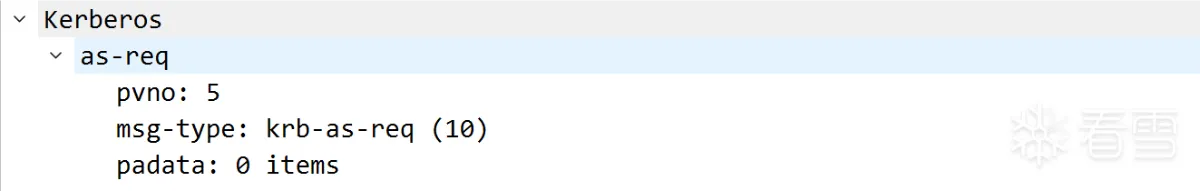 在这里pvno:5字段代表版本号为5,msg-type为版本号,padata里面为加密时间戳。
