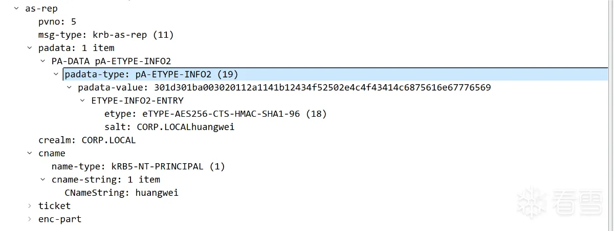 CORP.LOCALhuangwei为加密的盐,下面的就是客户端用户名和域名之类的