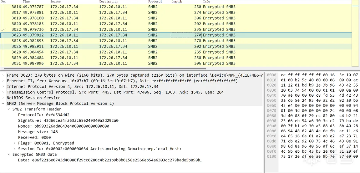 首先得知道什么是UNP名称,其实就是用户名@域名,然后SMB协议(网络文件共享协议)会执行DCSync,这里面在SMB2(SMB2.0)协议里面,得到了Administrater,wangkai,还有sunxiuying,试一下发现是sunxiuying