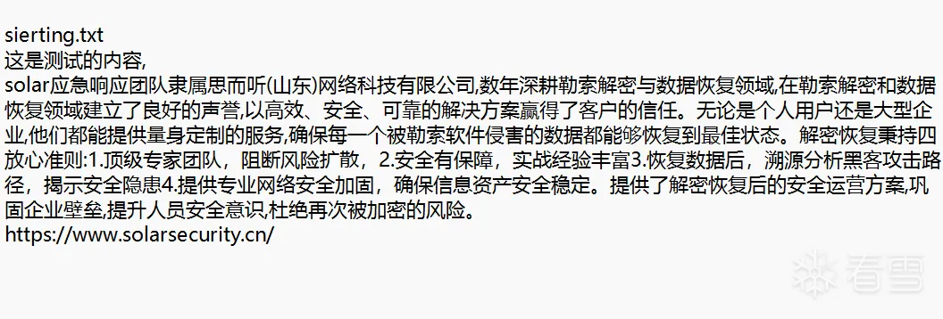 加密文件名 = 原始文件名+rox ,例如:sierting.txt.rox