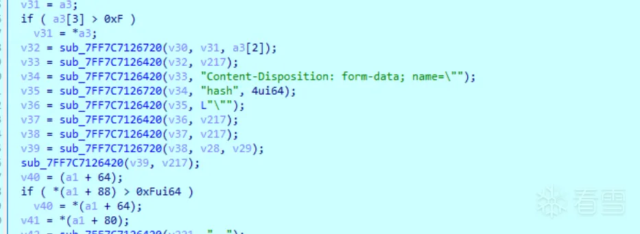 1 2 3 4 5 6 7 8 9 10 11 12 13 14 15 16 17 18 19 20 21 22 23 24 25 26 27 28 29 30 31 32 33 34 35 36 37 38 39 40 41 42 43 44 45 46 47 48 49 50 51 52 53 54 55 56 57 58 59 60 61 62 63 64 65 66 67 68 69 70 71 72 73 74 75 76 77 78 79 80 81 82 83 84 85 86 87 88 89 90 91 92 93 94 95 96 97 98 99 100 101 102 103 104 105 106 107 108 109 110 111 112 113 114 115 116 117 118 119 120 121 122 123 124 125 126 127 128 129 130 | void __fastcall sub_7FF7C7132920(__int64 a1, _QWORD *a2){ _QWORD *v4; // r9 DWORD LastError; // eax __int64 v6; // r14 char *v7; // r8 __int64 v8; // rax __int64 v9; // rdx WCHAR *cFileName; // rax signed __int64 v11; // r8 _QWORD *v12; // r9 unsigned __int64 v13; // r8 __int128 *v14; // rbx __int64 v15; // rax __int64 v16; // rbx __int64 v17; // rax HANDLE hFindFile; // [rsp+30h] [rbp-D0h] BYREF __int128 *v19; // [rsp+38h] [rbp-C8h] __int128 v20; // [rsp+40h] [rbp-C0h] BYREF __int64 v21; // [rsp+50h] [rbp-B0h] __int64 v22; // [rsp+58h] [rbp-A8h] HANDLE *p_hFindFile; // [rsp+60h] [rbp-A0h] char v24[32]; // [rsp+70h] [rbp-90h] BYREF char v25[72]; // [rsp+90h] [rbp-70h] BYREF _QWORD *v26; // [rsp+D8h] [rbp-28h] __int64 v27[4]; // [rsp+E0h] [rbp-20h] BYREF __int64 v28[6]; // [rsp+100h] [rbp+0h] BYREF struct _WIN32_FIND_DATAW FindFileData; // [rsp+130h] [rbp+30h] BYREF __m128i pszDest; // [rsp+380h] [rbp+280h] BYREF v26 = a2; shengcheng_str_0(&pszDest, 0, 0x2000ui64); v4 = a2; if ( a2[3] > 7ui64 ) v4 = *a2; wnsprintfW(&pszDest, 4096, L"%s\\*", v4); shengcheng_str_0(&FindFileData, 0, 0x250ui64); hFindFile = FindFirstFileExW(&pszDest, FindExInfoStandard, &FindFileData, FindExSearchNameMatch, 0i64, 2u); if ( hFindFile == -1i64 ) { LastError = GetLastError(); sub_7FF7C712CDD0(1i64, L"Failed FindFistFileExW, last error code %d\n", LastError); goto LABEL_34; } p_hFindFile = &hFindFile; v6 = 0i64; do { if ( lstrcmpW(FindFileData.cFileName, L".") && lstrcmpW(FindFileData.cFileName, L"..") ) { v7 = (a1 + 168); v8 = -1i64; do ++v8; while ( FindFileData.cFileName[v8] ); v9 = *(a1 + 184); if ( *(a1 + 192) > 7ui64 ) v7 = *v7; if ( v9 == v8 ) { cFileName = FindFileData.cFileName; if ( !v9 ) continue; v11 = v7 - FindFileData.cFileName; while ( *(cFileName + v11) == *cFileName ) { ++cFileName; if ( !--v9 ) goto LABEL_30; } } if ( (FindFileData.dwFileAttributes & 0xB7) != 0 ) { v12 = a2; if ( a2[3] > 7ui64 ) v12 = *a2; wnsprintfW(&pszDest, 4096, L"%s\\%s", v12, FindFileData.cFileName); sub_7FF7C7130C10(v27, &pszDest, FindFileData.cFileName, (FindFileData.dwFileAttributes & 0x10) == 0); if ( sub_7FF7C71337D0(a1, v27) ) { if ( (FindFileData.dwFileAttributes & 0x10) != 0 ) { if ( *(a1 + 8) ) { v20 = 0i64; v21 = 0i64; v22 = 0i64; v13 = -1i64; do ++v13; while ( pszDest.m128i_i16[v13] ); shengcheng_str(&v20, &pszDest, v13); sub_7FF7C7132920(a1, &v20); } } else { v14 = sub_7FF7C7130BA0(v25, v27); v19 = v14; v15 = *(a1 + 96); if ( !v15 ) std::_Xbad_function_call(); (*(*v15 + 16i64))(*(a1 + 96), v14); sub_7FF7C7111BE0(v14 + 4); sub_7FF7C7111BE0(v14); ++v6; } } sub_7FF7C7111BE0(v28); sub_7FF7C7111BE0(v27); } }LABEL_30: ; } while ( FindNextFileW(hFindFile, &FindFileData) ); if ( v6 ) { v19 = &v20; v16 = sub_7FF7C7111C50(&v20, a2); v17 = sub_7FF7C7111C50(v24, a2); sub_7FF7C7130CB0(v27, v17, v16, 0i64); sub_7FF7C7133770(a1, v27); sub_7FF7C7111BE0(v28); sub_7FF7C7111BE0(v27); } FindClose(hFindFile);LABEL_34: sub_7FF7C7111BE0(a2);} |