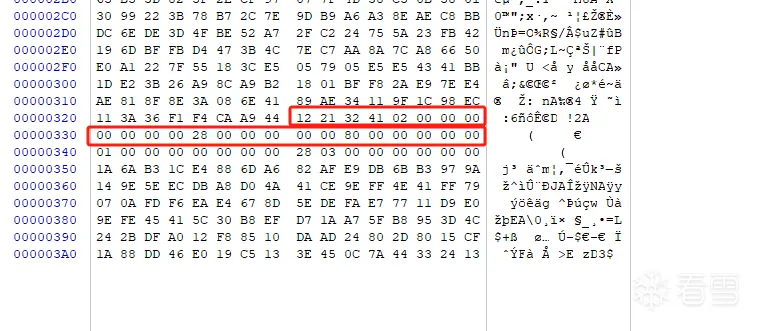 如下,在倒数136字节处会有特征字节
