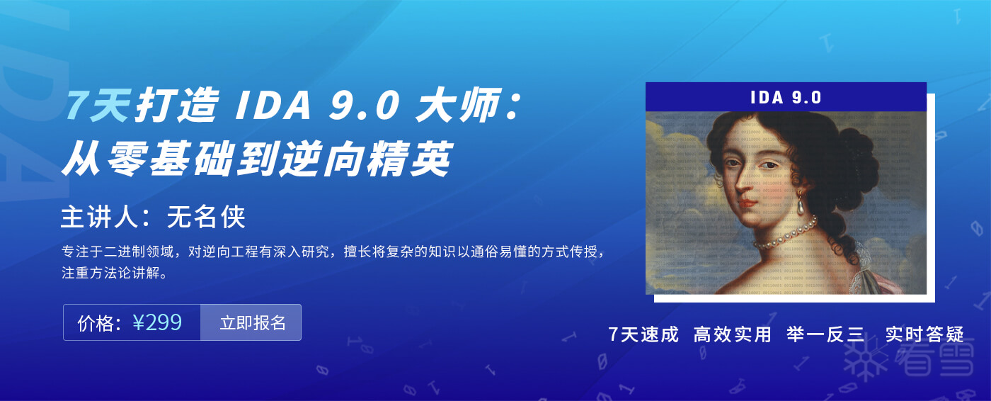 无名侠:985 网络空间安全硕士在读,曾在 KCon、看雪峰会等安全工业会议发表议题,参与《加密与解密》编写,看雪论坛发表精华技术文章十余篇,研究逆向工程十余年,拥有各种场景逆向工程经验。