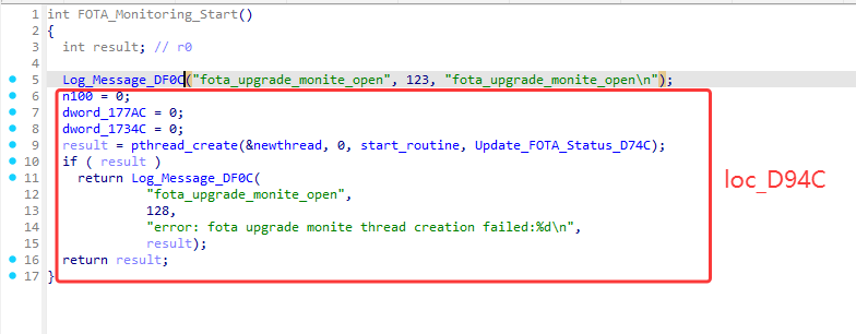该函数是FOTA守护进程的主函数,负责初始化配置、监听控制命令,并根据接收到的命令执行固件升级操作。sub_E344:消息处理函数,负责解析命令和执行升级操作,需分析其实现以了解核心升级逻辑。