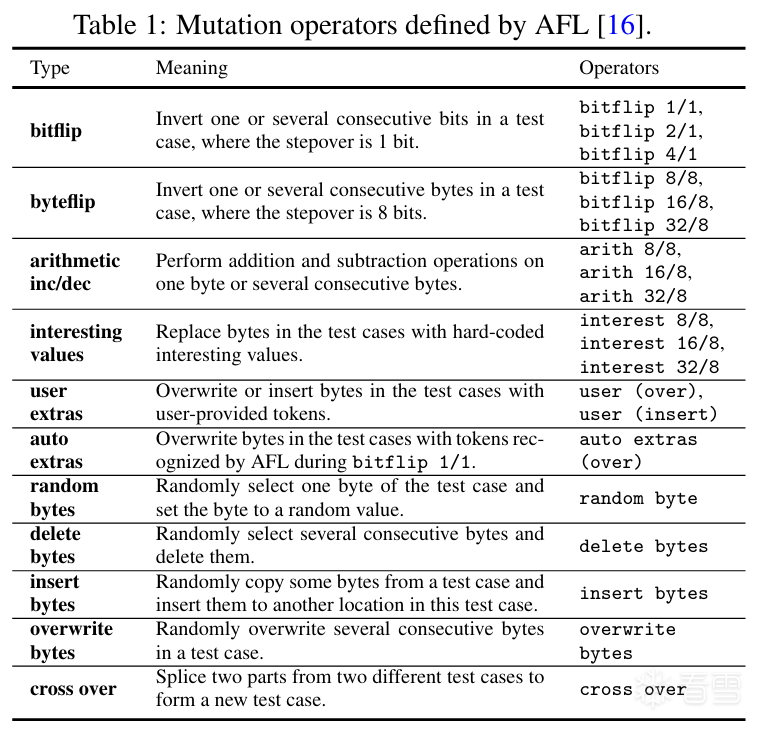 确定性变异包括在测试用例的内容上进行单个的确定性变异,如位翻转、加法、用一组常见值(例如-1、INT_MAX…)进行整数代换等。