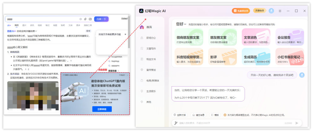 浏览器弹窗安装:在测试过程中,浏览器弹出《推荐-安装幻笔 AI》窗口,经交互验证,点击该弹窗将触发安装流程。