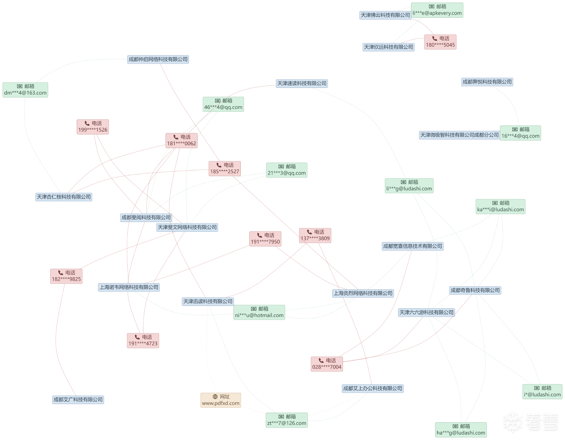 基于上述信息,我们基本能够构建出一张隐匿于背后的庞大关系网,该关系网将看似毫无关联的数十家公司连接起来,其背后暗藏着利益输送与技术输送的纽带,完成最终的推广业务。