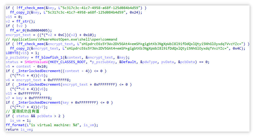 检测 HKEY_CLASSES_ROOT\Applications\VMwareHostOpen.exe\shell\open\command 是否存在且默认值有效则会判断为虚拟机。
