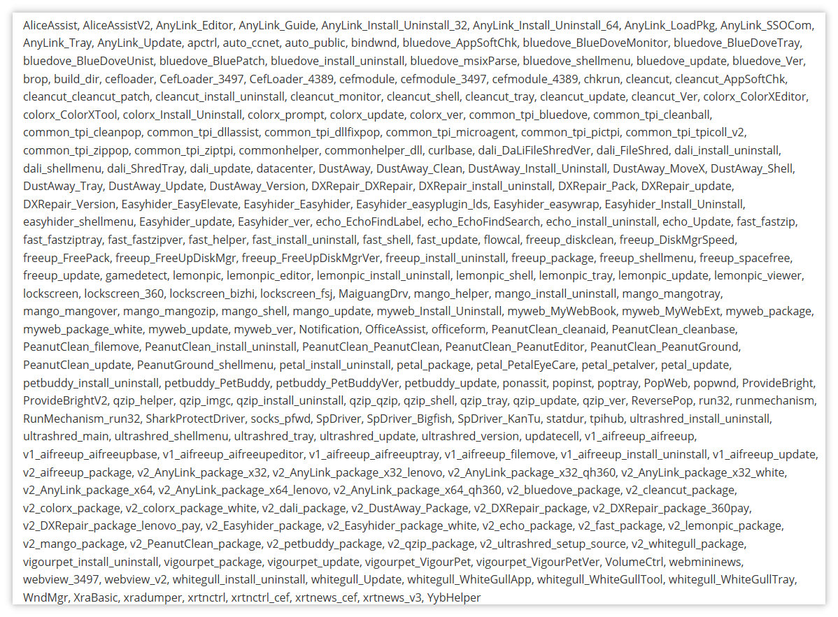 根据火绒安全情报中心的统计数据,大量软件包含本文所述的推广模块。下图中列表列出的软件被发现与本次威胁具有较强相关性(包括但不限于):