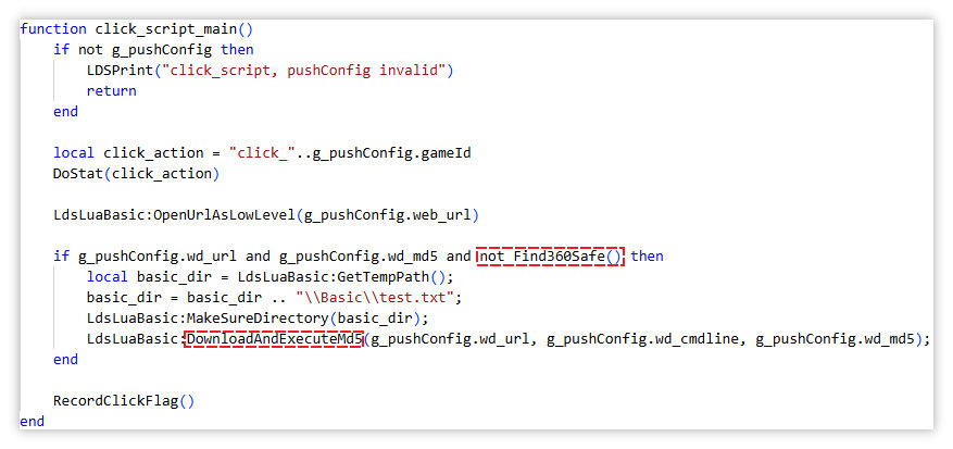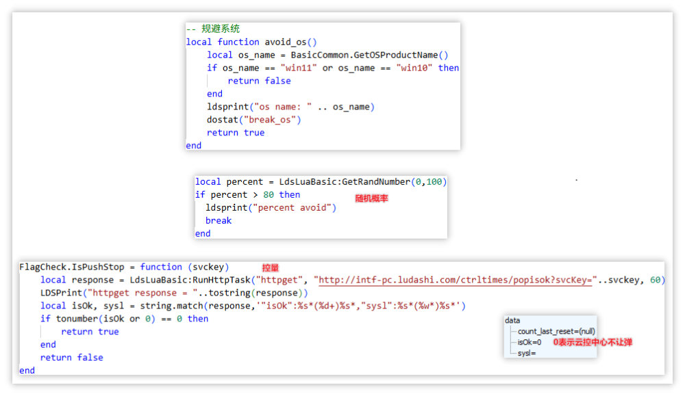 规避代码不止在推广模块中执行,也在 Lua 脚本中执行,且不同公司和软件拥有不同的规避手段。下面将介绍分析过程中发现的规避手段。