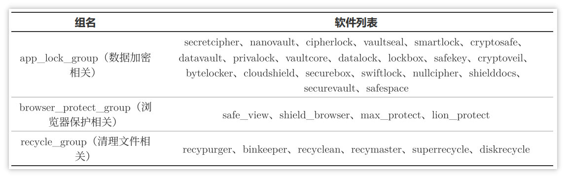 以下软件组,分别为数据加密、浏览器保护、清理文件等软件。