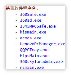 检查 SOFTWARE\Microsoft\Windows\CurrentVersion\Uninstall 注册表路径中 DisplayIcon 与 InstallLocation 键值中是否存在以下杀软程序名,如果存在,则将其收集到 sr 键值中。