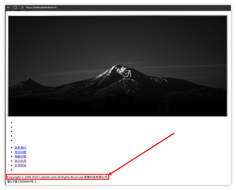 而当访问网站"bizhi.shanhutech.cn"时,会进入一个小鸟壁纸软件的下载页面,网站下方的版权文字显示属于"奇鲁科技有限公司"和"ludashi.com"。