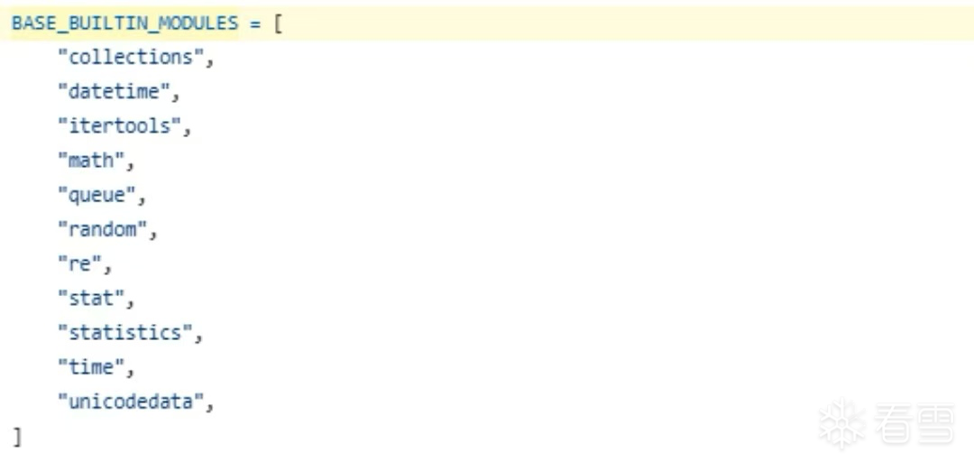 程序从util文件中导入 BASE_BUILTIN_MODULES,在之后的代码检查过程中,只允许导入在 authorized_imports(通常是 BASE_BUILTIN_MODULES)白名单中的模块。