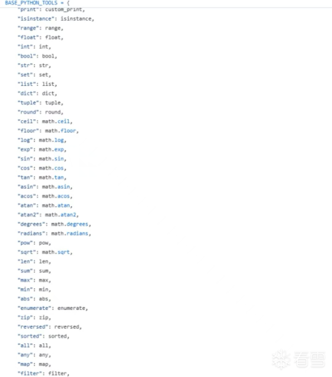 static_tools或 custom_tools声明的工具是通过BASE_PYTHON_TOOLS来定义。BASE_PYTHON_TOOLS定义的内容如下。