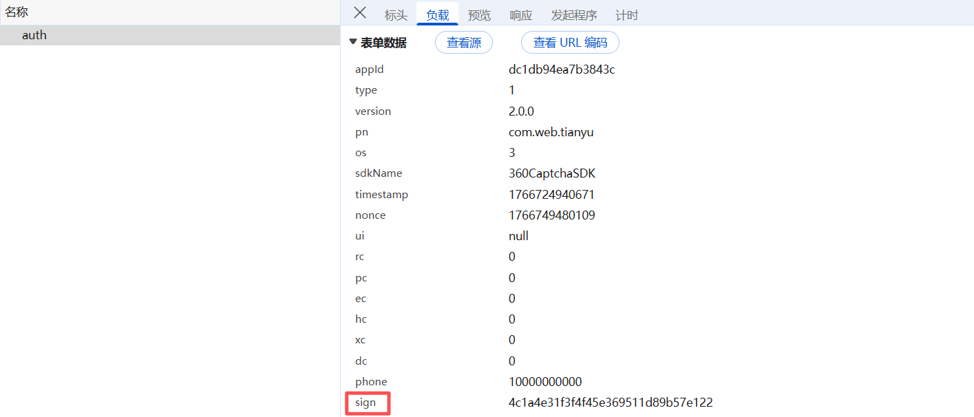 auth接口只有一个sign参数加密