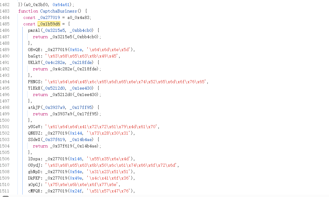 混淆代码中存在大量对象字面量,用于存储字符串和函数包装:
