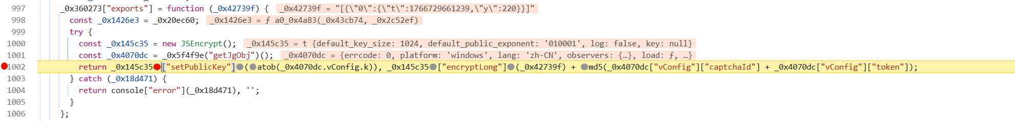 这个sign函数就是将固定值对象_0x392c78取值进行生成签名,然后加密明文有时间戳,所以就有了接口的有效性校验。生成签名之后最后赋值给对象返回