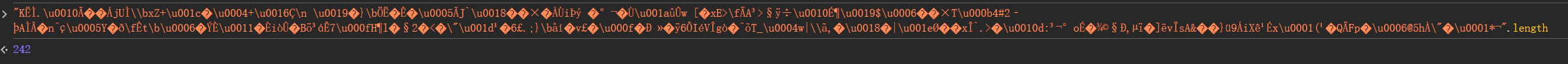乱码长度为242位,往上观察,发现242位的乱码是由几段其它乱码拼接而成,但是拼接方式不清晰,只知道前面一个K被分离出来的了。
