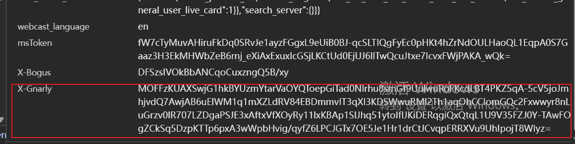 本篇文章逆向参数为x-gnarly, 下面搜索接口为例,观察发现,是个324位的字符串: