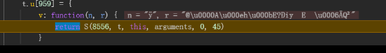 在乱码2最后出现的地方,往上找,发现有一段和乱码2长度一样的乱码出现(下面简称乱码3),打上断点,进行跟值,发现有进入了S函数