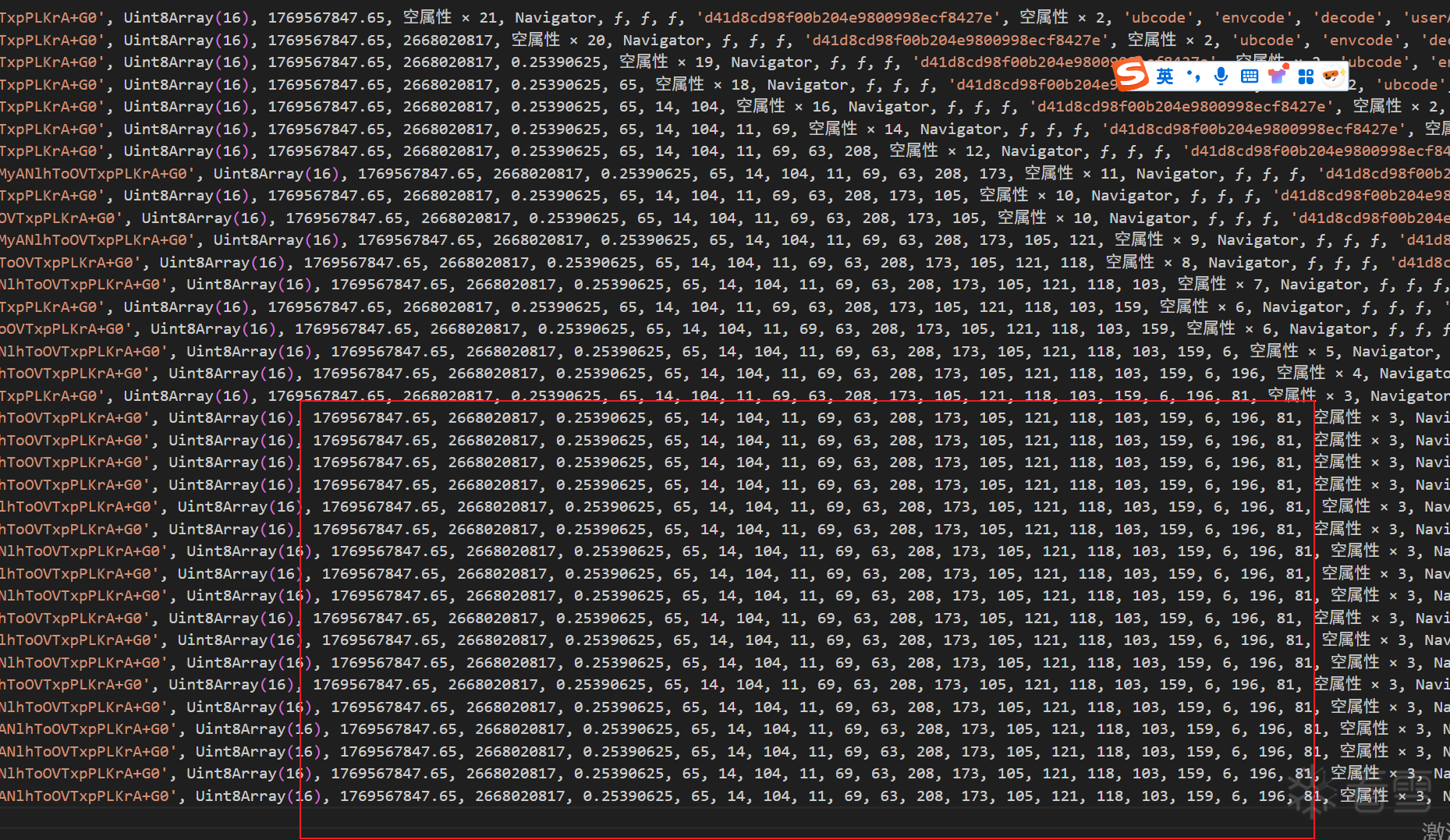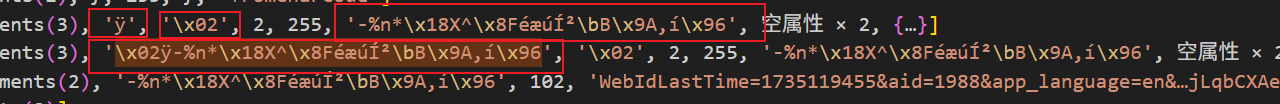 开始在日志里面全局搜索乱码,发现是有'ÿ','\x02','-%n*\x18X^\x8FéæúͲ\bB\x9A,í\x96'这三个乱码生成,经过对比,前两个是固定的,后面一个是变化的(下面简称乱码2).