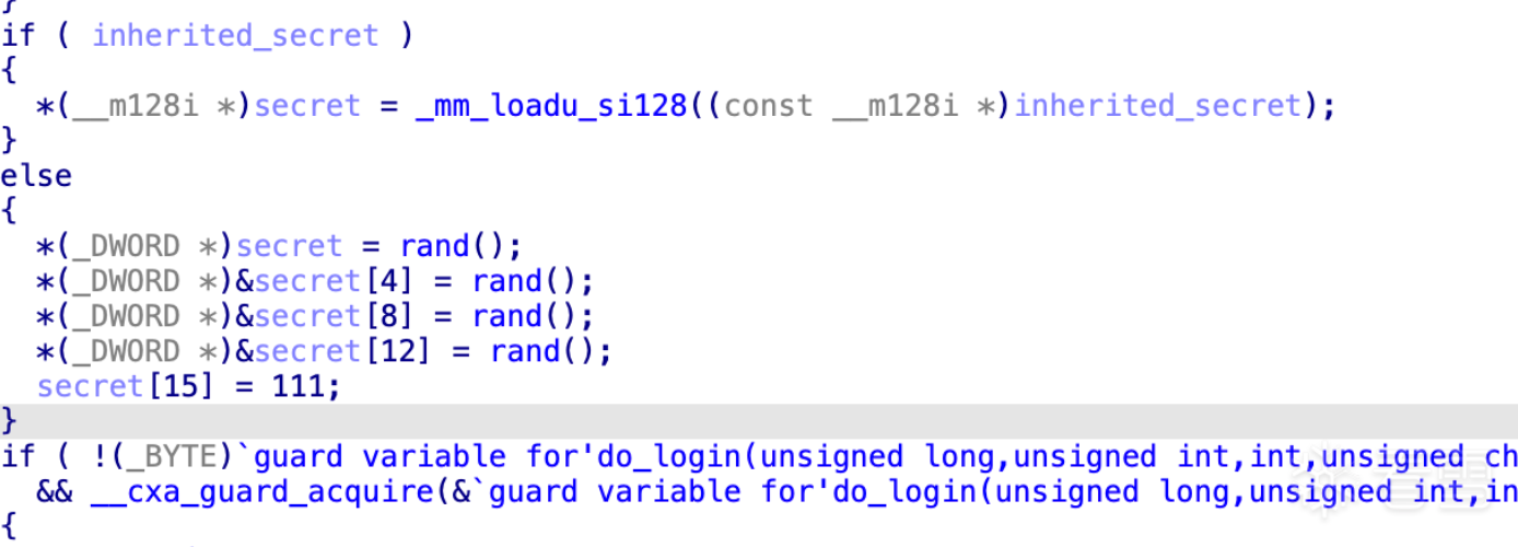 # C++ 代码中有一行: secret[15] = 111 (即 0x6F, 字符 'o')
