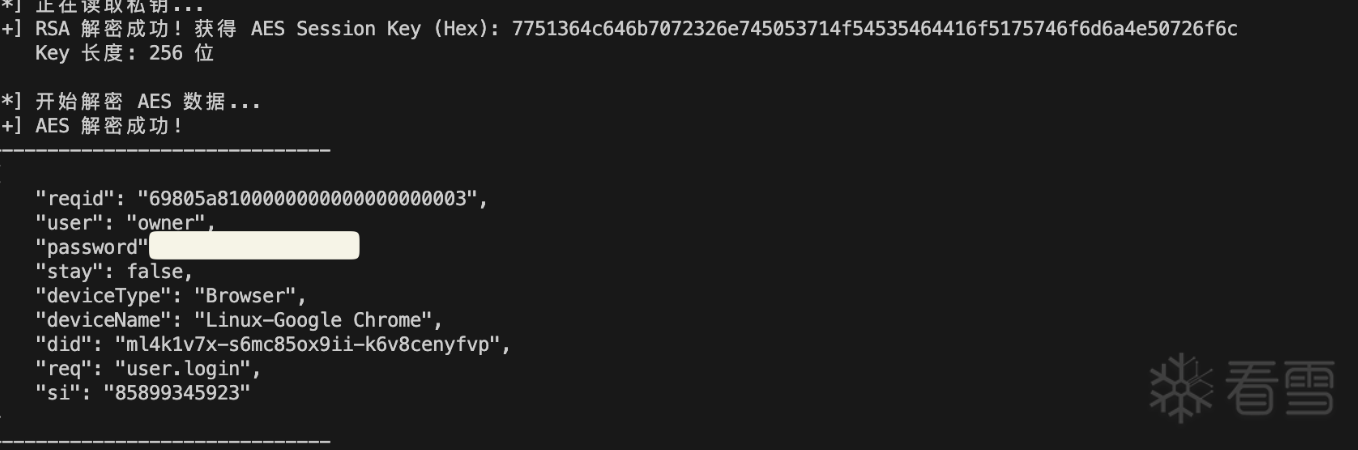 print(f"[+] 拿到 Session Key (Hex): {session_key_bytes.hex()}")