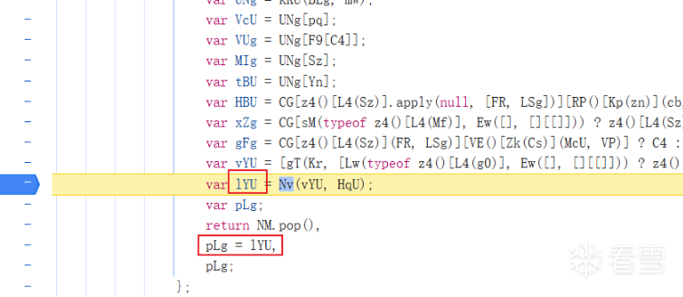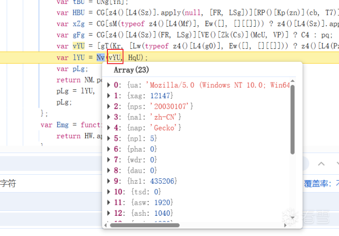 从后往前看,直接定位到lYU,在这个位置断点。 对比前面c0U()返回的对象,可以发现vYU对象就是排序前的数组,所以Nv很明显就是数组重新排序的函数。