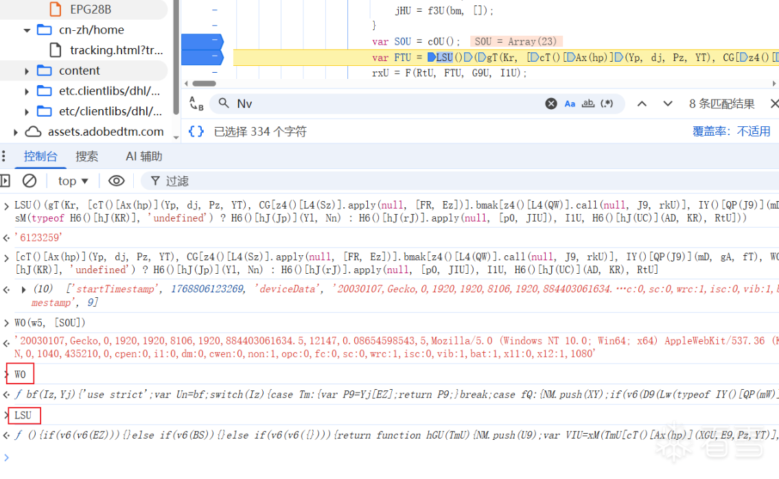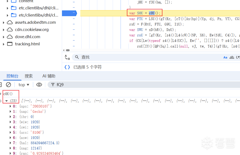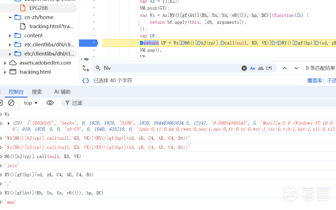 2、din参数分析 定位到din生成位置,控制台输出可以看得出来基本上都是些浏览器环境,跟进c0U函数。