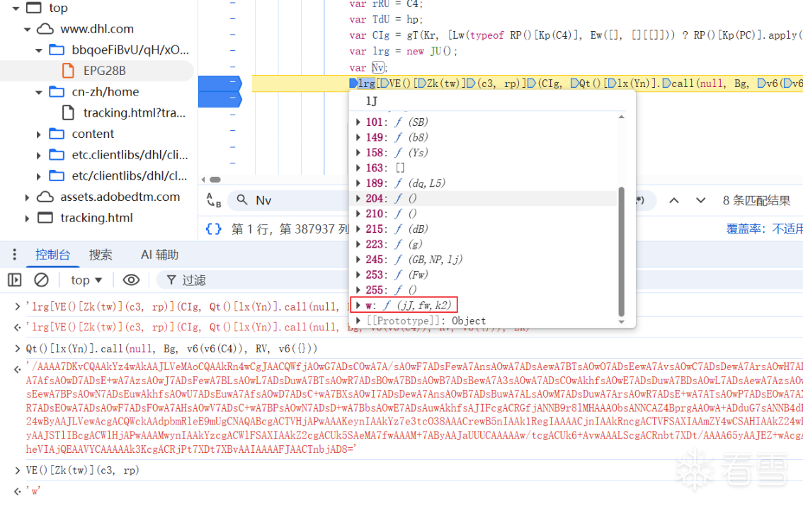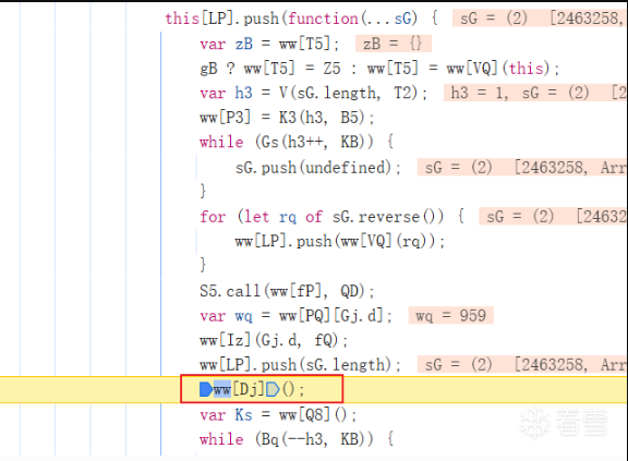 跟进Nv函数,单步跟一下很容易就找到入口ww[Dj](),继续跟进。