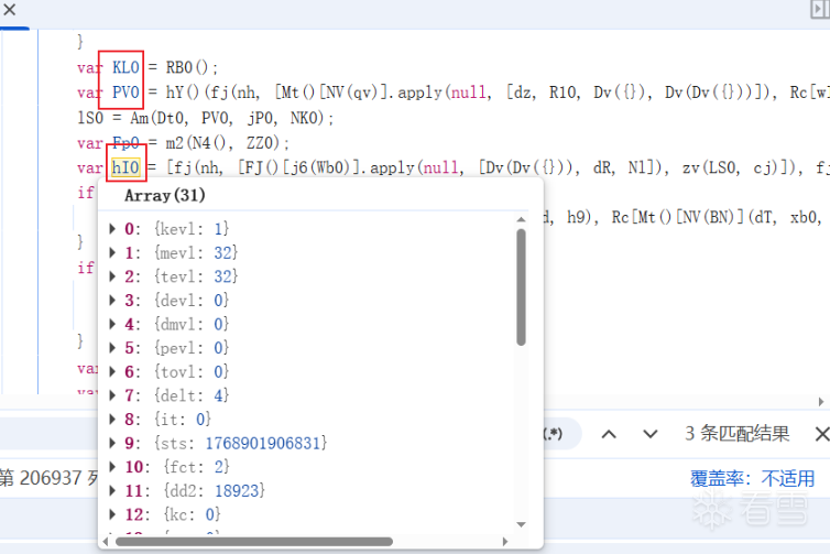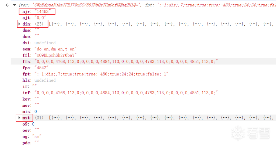 vev: '', 第三次请求中数值会变 dme: '', 第三次请求中数值会变 mev: '', 第三次请求中等于ajr的mouseMoveData doe: '', 第三次请求中数值会变 per(可固定): '8', 第2次请求开始数值变大并固定 sww: {"s024": -1}, 第2次请求开始固定数值 ver:短时间可以固定