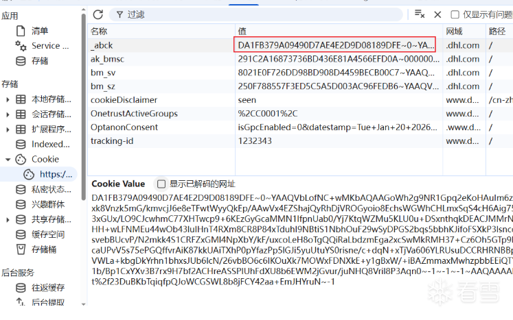 1、接口分析 目标网站:aHR0cHM6Ly93d3cuZGhsLmNvbS9jbi16aC9ob21lL3RyYWNraW5nLmh0bWw=