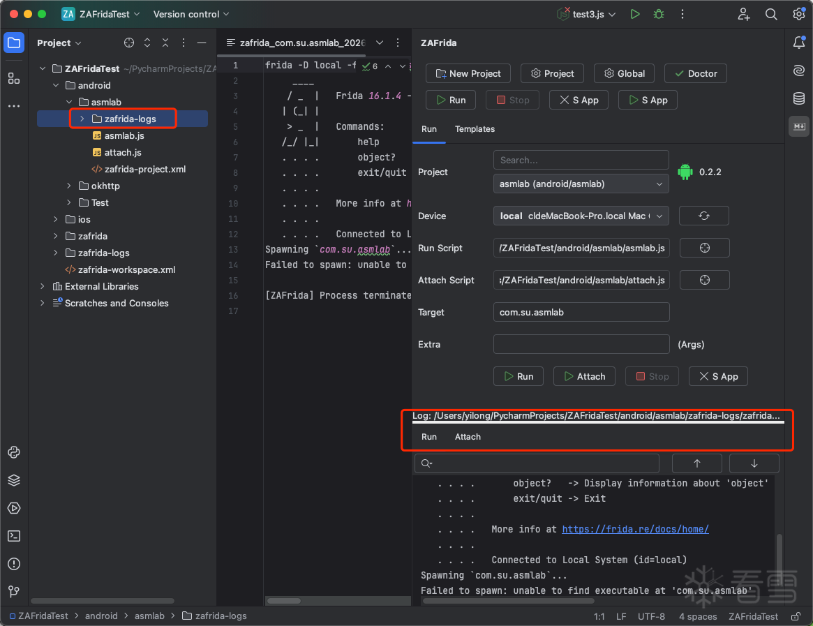 在 ZAFrida → Run 面板: