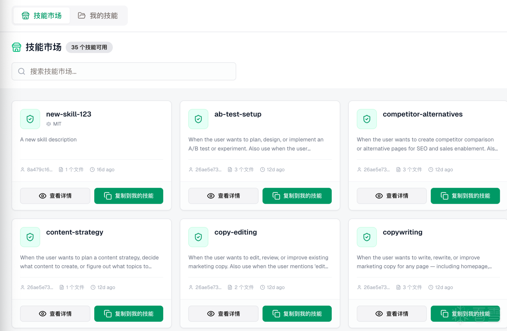 Skill(技能)是平台的核心能力单元,可以理解为“Agent 的专业技能包”。每个 Skill 封装了特定领域的工作手册",包含步骤说明、代码模板和规范文档,让 AI 按你要求的方式干活