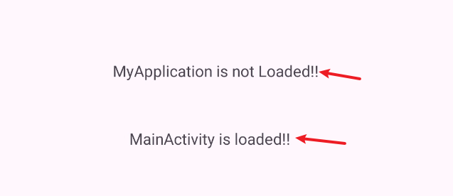 MainActivity1 2 3 4 5 6 7 8 9 10 11 12 13 14 | public class MainActivity extends AppCompatActivity { protected void onCreate(Bundle savedInstanceState) { super.onCreate(savedInstanceState); EdgeToEdge.enable(this); setContentView(R.layout.activity_main); TextView tv_application = (TextView) findViewById(R.id.text_Application); TextView tv_activity = (TextView) findViewById(R.id.text_Activity); if(getApplication() instanceof MyApplication){ tv_application.setText("MyApplication is loaded"); } tv_activity.setText("MainActivity is loaded!!"); }} |