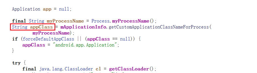 Application问题处理 出现这种问题的原因是通过我们此时加载的Application是壳的,不是源程序的Application。此时需要手动创建Application然后替换一些相关的东西。通过源代码可以看到ActivityThread创建Application的方法: